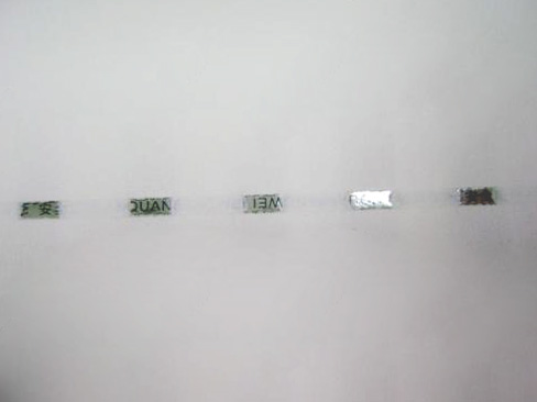 (5)荧光安全线:利用涂布等方式将荧光化合物涂覆在安全线上,在紫外光的照射下,安全线上的荧光化合物会呈现可见光颜色。