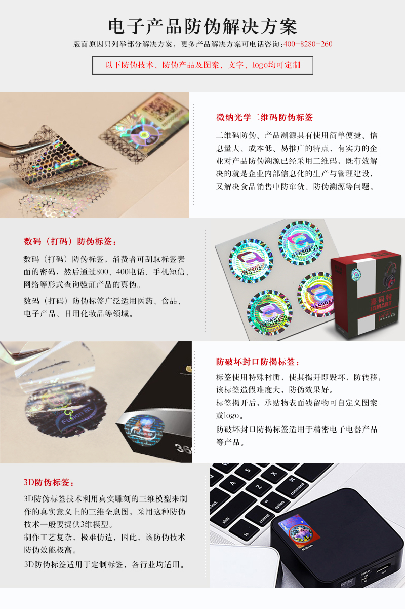 ◆ 1、微缩文字防伪不干胶标签(用于手机/U盘/主板等) ◆ 2、数码防伪标签(打码查询)