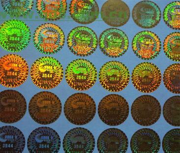 看上去就很高大上样子吧?其实大家或多或少应该都碰过这一类防伪标签,举个例子吧当你买回了一本书书上有一个或园或方或者其他什么样式的一个防伪标识,仔细看时你会发现这个防伪标签上似乎会发出七彩的光,字体看上去就像是有很多各色的颜色印刷而成的,这个就叫做激光防伪标签(又可称之为全息防伪标签)。