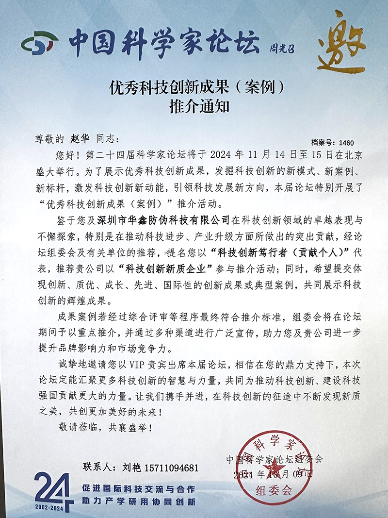 “2024 年度防伪行业领军企业”和“2024年度防伪行业领军人物”邀 请 函